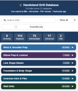 Handstand drills table
